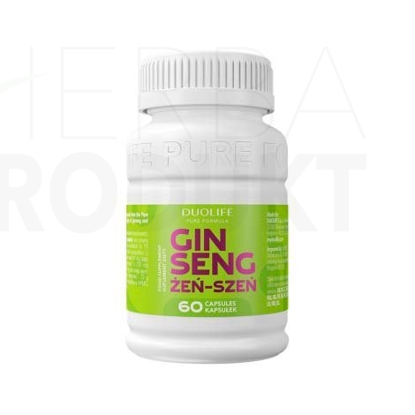 datum minimální trvanlivosti 3/2026 DUOLIFE Ginseng je doplněk stravy z řady Pure Formula, který obsahuje komplex výtažků z tří druhů ženšenu: pravého, amerického a sibiřského v koncentrované dávce. Je uzavřen v kapslích s derivátem organické celulózy (HPMC) s postupným uvolňováním.? Ženšen posiluje vitalitu a koncentraci a podporuje udržení sexuální výkonnosti.