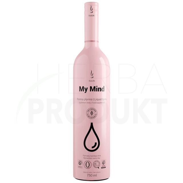 DuoLife My Mind je doplněk stravy v tekuté formě, obsahující přírodní složky rostlinného původu včetně patentovaných složek CogniviaTM* a Aronvit®, s inositolem a aktivní formou vitaminu B12 (methylkobalaminem). Přípravek obsahuje látky nejvyšší kvality, které podporují soustředění, paměť a kognitivní procesy u mladých lidí i seniorů. Je důležitým zdrojem vitaminů a mnoha účinných látek obsažených ve standardizovaných rostlinných výtažcích. Zdraví prospěšný účinek složek obsažených v doplňku stravy byl prokázán klinickými studiemi a doložen vědeckými publikacemi.