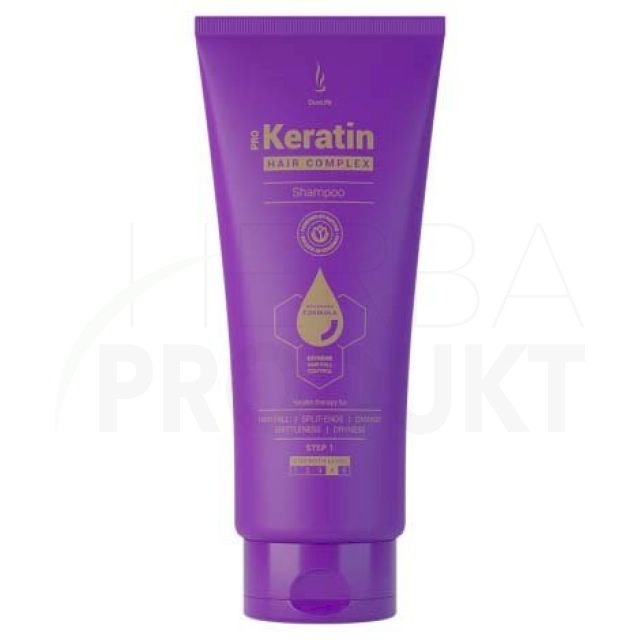 Šampon Pro Keratin Hair Complex je kosmetický přípravek určený v případě vypadávání vlasů, na suché, poškozené vlasy bez lesku, s roztřepenými konečky. Kombinace až 6 účinných látek, tedy výtažku z hrachových klíčků, výtažku z listů kopřivy, hydrolyzovaného keratinu, výtažku z pupečníku asijského, výtažku z borůvky a močoviny, umožnila vyvinout novou dimenzi péče o vlasy.