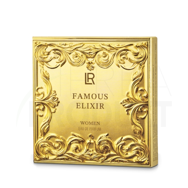 Famous Elixir Women je parfém pro ženy, které chtějí vytvořit svou vlastní legendu a rády stojí v centru pozornosti. Luxus bílých květů kombinuje nadčasovou eleganci a nezapomenutelný jas. Kompozice se otevírá sofistikovaným nádechem mandlí a svěžestí růžového pepře, aby připravila půdu pro dramatické vystoupení. V srdci září tuberóza a jasmín – čistá ženskost a elegance jako glamour na červeném koberci. Tajnou hvězdou je brazilský tonkový bob: unikátní aroma získává z tropického klimatu a pomalé fermentace na slunci; k výrobě 1 kg extraktu absolue je potřeba celá tuna tonkových bobů. Jeho svůdně krémová textura s jemnými mandlovými tóny dodá vůni nesrovnatelnou auru.