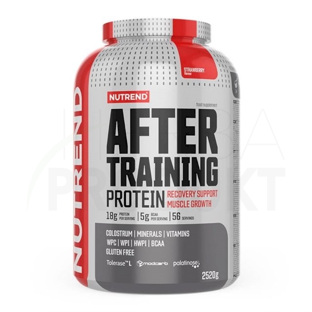 Mimořádné složení tohoto proteinu nabízí všem sportovcům ideální proteinovou směs, určenou pro konzumaci ihned po ukončení náročného tréninku. Základ tohoto proteinu tvoří mimořádně kvalitní proteinová směs, která vyniká lehkou a rychlou vstřebatelností a využitelností. Součástí této směsi je značkový hydrolyzovaný syrovátkový izolát Hydrovon™, prémiový syrovátkový izolát (WPI) a prémiový ultra-filtrovaný koncentrát mléčné syrovátky (WPC). Aby svalstvo mohlo růst, je třeba ukončit katabolickou reakci zapříčiněnou fyzickou aktivitou, doplněním glykogenu díky speciální směsi sacharidů, které jsou v produktu AFTER TRAINING PROTEIN zastoupeny značkovými surovinami Palatinose™ a ModCarb™, které zajistí pozvolné uvolnění glukózy. Unikátní složení doplňuje bioaktivní kolostrum, vysoký obsah větvených aminokyselin (BCAA), extrakt z Ginkgo biloby, směs speciálně zvolených vitamínů a minerálů pro snížení únavy a vyčerpání. Vše je ideálně navrženo pro podporu svalového růstu. Produkt AFTER TRAINING PROTEIN je navíc obohacen o trávicí enzym Tolarase®-L, který podporuje vstřebání mléčného cukru laktózy. Rozmíchání tohoto produktu je ideální při použití šejkru NUTREND