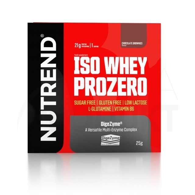 Příchuť čokoládové brownies: syrovátkový proteinový izolát (obsahuje sójový lecitin), L-glutamin, kakao, sušené plnotučné mléko, aroma, zahušťovadlo xanthanová guma, protispékavá látka oxid křemičitý, směs trávících enzymů Digezyme® (amyláza, proteáza, laktáza, lipáza a celuláza), sladidla sukralóza a steviol-glykosidy, pyridoxin hydrochlorid.