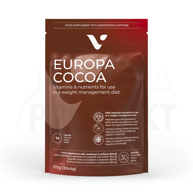Europa Cocoa obohacené o vitamín B6 a chrom je navrženo tak, aby podporovalo zdravýmetabolismus a udržovalo stabilní hladinu energie. Tyto základní živiny také přispívají kvyvážené náladě, takže váš den bude hladší.